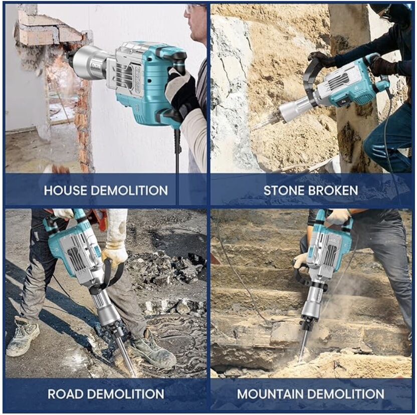 Includes: demolition hammer*1; Flat Chisel*1; Bull Point Chisel*1; This jack hammer equips you for success, making it a valuable choice for professionals and DIY enthusiasts alike.