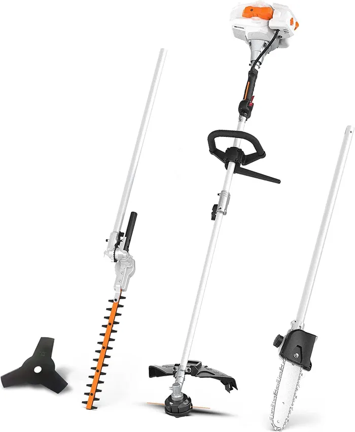 The Multi Yard Care Tools include a pole saw attachment for trimming high branches and a hedge trimmer attachment for shaping and maintaining hedges. The powerful engine provides consistent power, allowing you to cut through thick branches and dense foliage with ease. The adjustable pole allows you to extend your reach, making it easier to trim high branches without the need for a ladder. The ergonomic handle and lightweight design ensure comfortable operation, reducing fatigue during extended use.