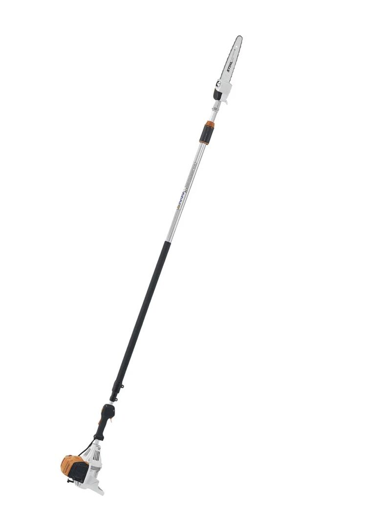 The Stihl 103 Pole Saw is equipped with a powerful, low-emission gas engine that provides reliable performance for extended use. Its lightweight telescoping shaft extends up to 12 feet, giving you added reach for high trimming tasks while maintaining excellent balance and control. The saw head features a durable guide bar and a sharp, fast-cutting chain, designed to slice cleanly through thick branches.